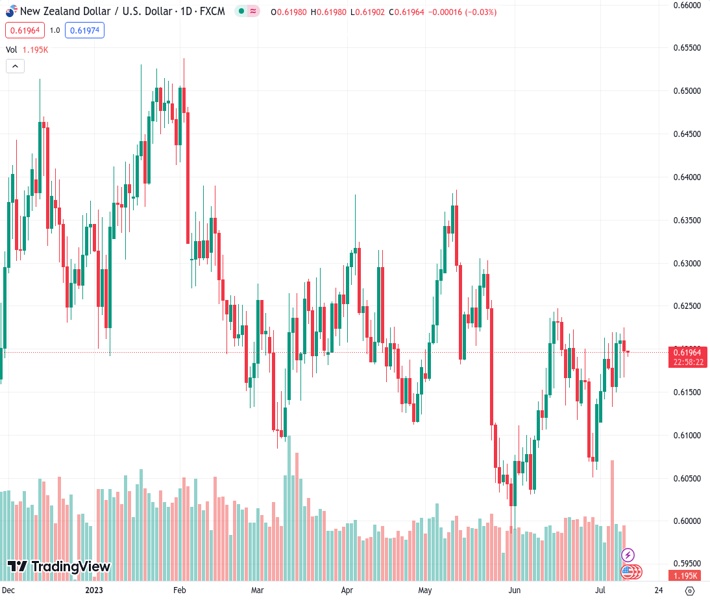 The NZD/USD trades with losses at the 0.6195 area while markets await the Reserve Bank of New Zealand (RBNZ) decision early in Wednesday’s session. In addition, all eyes will be on Consumer Price Index (CPI) data from June from the US, which is set to affect the bets on the Federal Reserve regarding its next monetary policy moves.