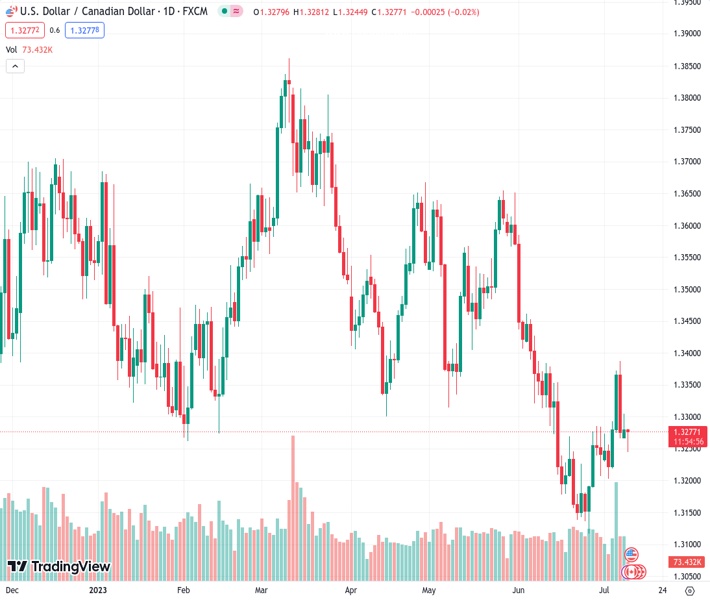 USDCAD currently trading at 1.3277 at the time of writing. Pair opened at 1.328 and is trading with a change of -0.02 % .
