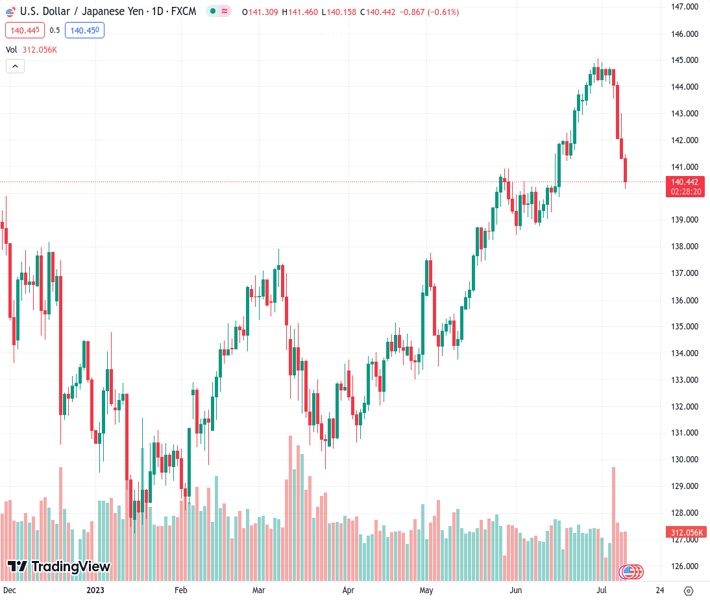 USDJPY currently trading at 140.34 at the time of writing. Pair opened at 141.31 and is trading with a change of -0.69 % .