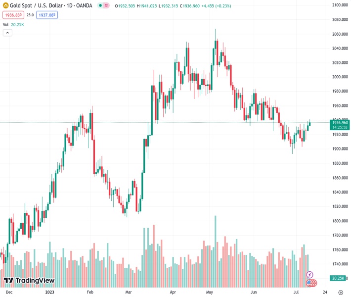 XAUUSD currently trading at 1938.89 at the time of writing. Pair opened at 1932.26 and is trading with a change of 0.34 % .
