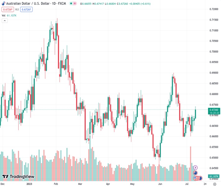 AUDUSD currently trading at 0.6722 at the time of writing. Pair opened at 0.6687 and is trading with a change of 0.52 % .
