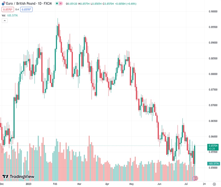 EURGBP currently trading at 0.8572 at the time of writing. Pair opened at 0.8512 and is trading with a change of 0.7 % .