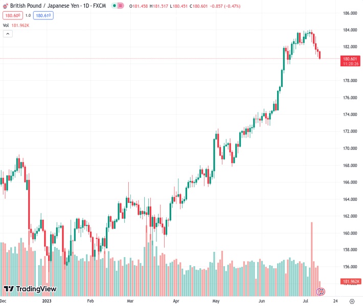 The GBP/JPY currency pair has experienced a significant decline, reaching a level close to 180.50, due to increased optimism regarding a potential adjustment in the Bank of Japan’s Yield Curve Control policy.