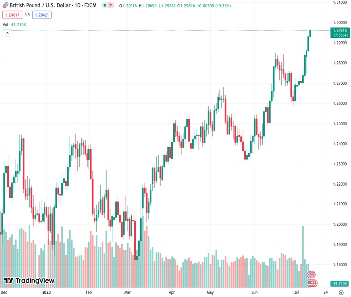 The GBPUSD pair rises above the 1.2950 level, reaching its highest level since April 2022.