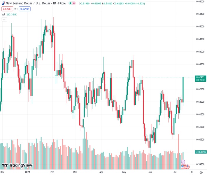 NZDUSD currently trading at 0.6298 at the time of writing. Pair opened at 0.62 and is trading with a change of 1.58 % .