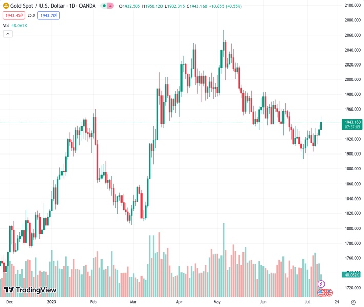 - Gold price has climbed strongly to $1,950.00 as US inflation has softened more than expectations.