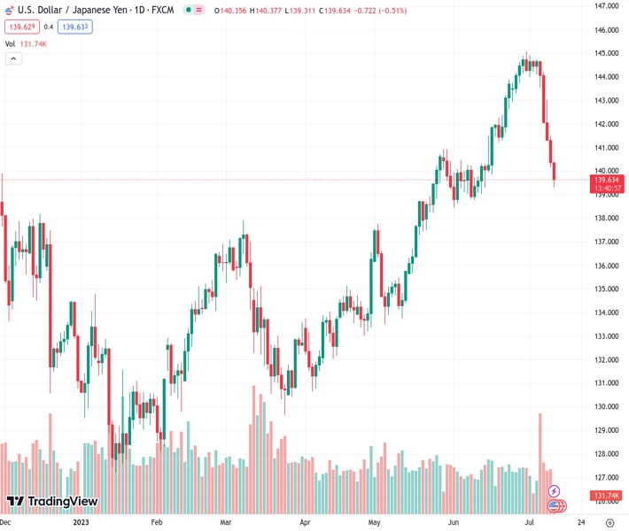 UBS predicts that the USDJPY currency pair, currently at 139.667, will decline and reach approximately 124 by June of next year.