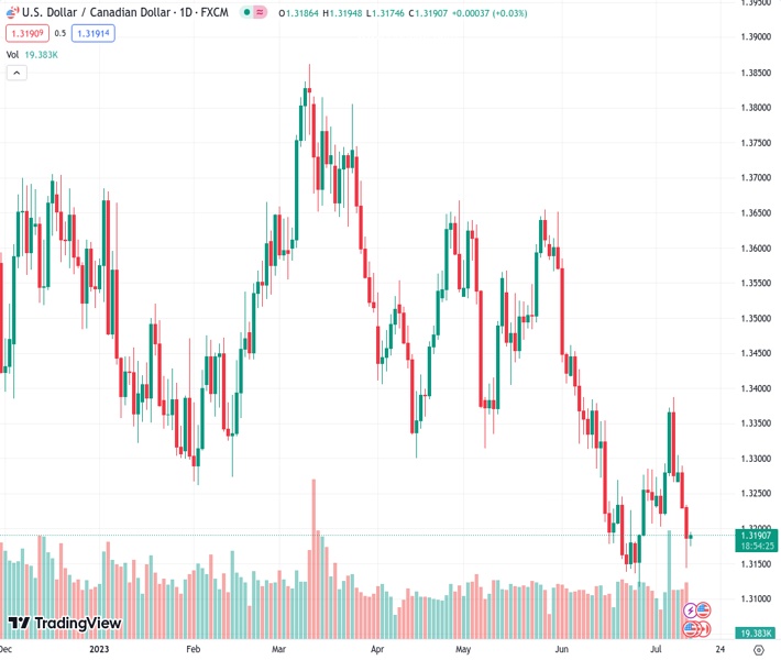 The BoC’s decision to raise rates comes after the release of US inflation data for June. The US Bureau of Labor Statistics publication showed that CPI declined to 3% YoY from the 3.1% prior. Meanwhile, the core CPI fell to 4.8% YoY from 5.3% versus the market consensus of 5%. The US Dollar faced some follow-through selling after the data and sharply declined to near 101.50, the lowest since April 2022. The inflation data reinforced expectations that the Federal Reserve will hold interest rates following an additional 25 bps raise at the July 25-26 policy meeting.