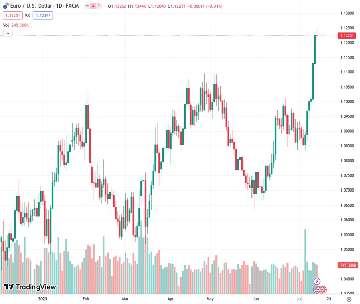 It is possible that the EURUSD currency pair, currently at 1.12253, has reached its peak and bullish investors are preparing for a potential change in direction.
