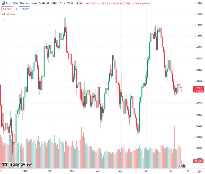 AUDNZD currently trading at 1.0767 at the time of writing. Pair opened at 1.0776 and is trading with a change of -0.08 % .
