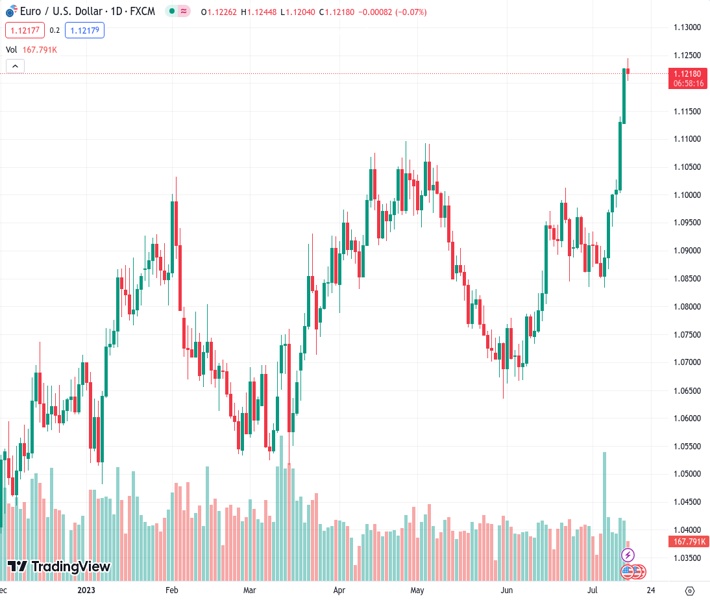 The price of EURUSD has risen to reach new highs within the range of 1.1240 to 1.1245.