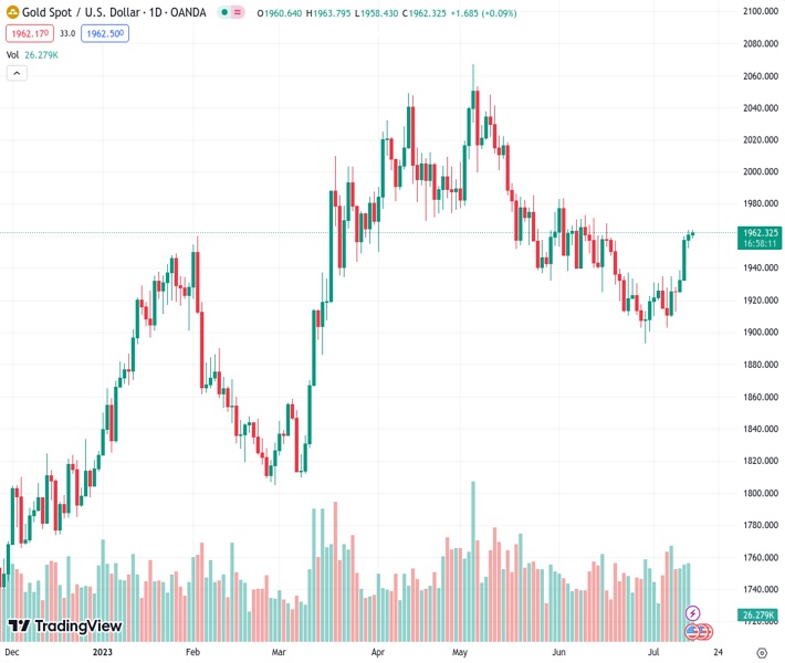 Gold price trades with a positive bias for the fourth successive day on Friday and hits a fresh one-month high, around the $1,964 area during the Asian session. The intraday uptick, however, lacks bullish conviction, though acceptance above the 100-day Simple Moving Average (SMA) supports prospects for an extension of the recent bounce from the $1,893 region, or a three-and-half-month low touched in June.