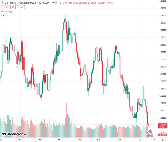 That said, the US Consumer Price Index (CPI) dropped to 3.0% YoY in June from 4.0% in May, below the market anticipation of 3.1%, while the Producer Price Index (PPI) rose 0.1%, the lowest figure since August 2020. The inflation report suggested that inflationary pressures in the US economy are cooling and that the Federal Reserve (Fed) will be less aggressive with tightening monetary policy after an expected interest rates hike in the upcoming meeting on July 26. This, in turn, leds to a further decline in the US Treasury bond yields and weighed on the US Dollar as well as the USD/CAD pair.