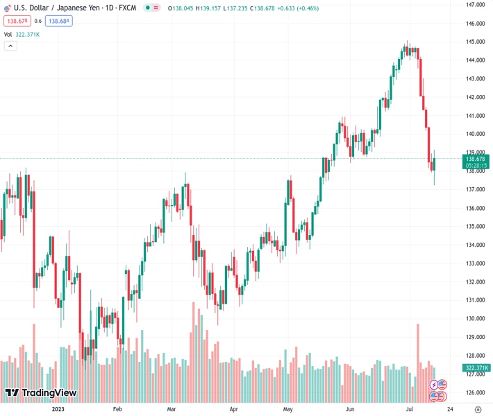 USDJPY currently trading at 138.5 at the time of writing. Pair opened at 138.05 and is trading with a change of 0.33 % .