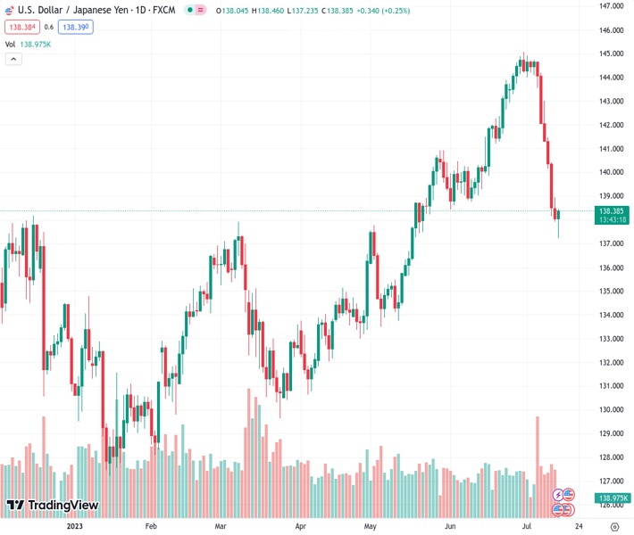 The USDJPY pair, currently at 138.365, has a possibility of falling below 137.15, according to UOB.