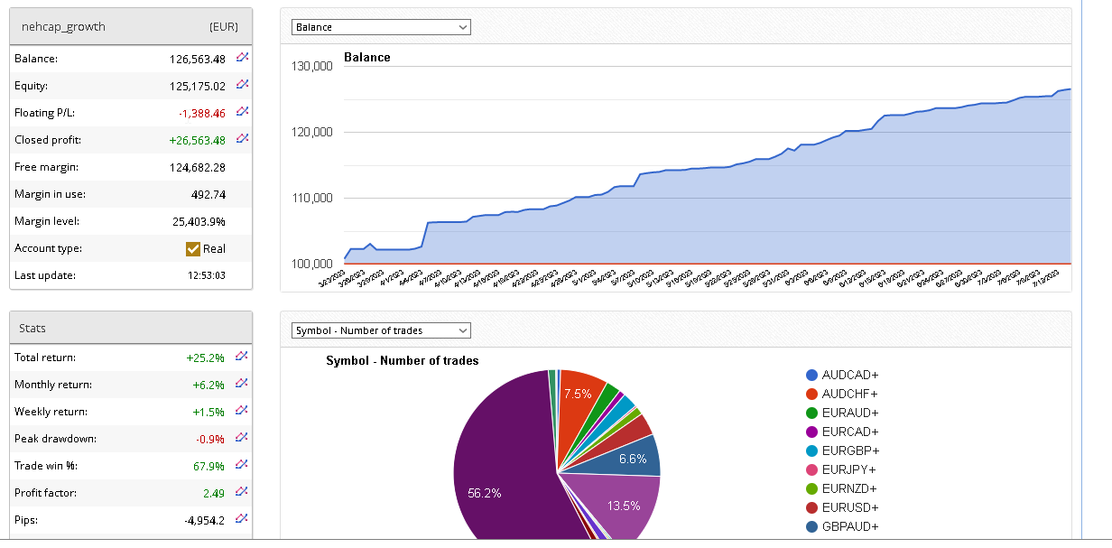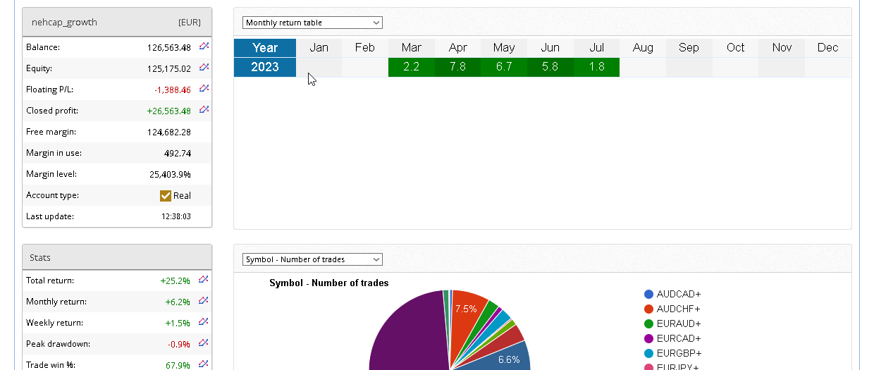 Some solid gains on USDCAD and USDCHF. Currently AUDCHF trading as returns this month hit +1.8% The system makes positive consistent returns every month with a very low DD. Historical high on DD was 12%. Max cut off trades is at 25% which has never happened neither during brexit nor during any time in history.