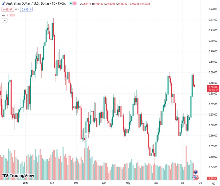 AUDUSD currently trading at 0.6834 at the time of writing. Pair opened at 0.6839 and is trading with a change of -0.07% % .