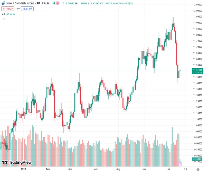 According to Commerzbank, the Swedish Krona is expected to continue depreciating in the upcoming days, as seen with the current EURSEK exchange rate at 11.5115.