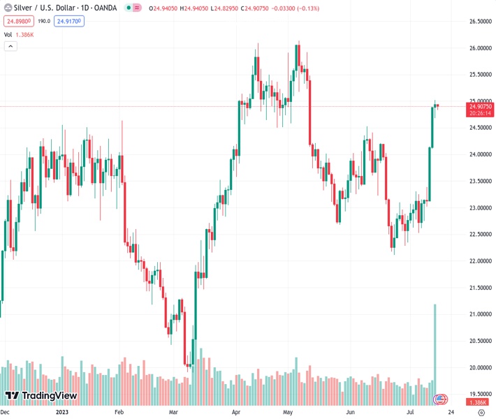 Silver price news: XAGUSD at 24.908 approaches $25.00 after minimizing its losses during intraday trading, thanks to positive signals from the options market.