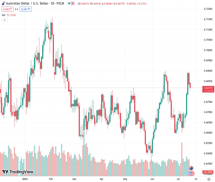 AUDUSD currently trading at 0.6819 at the time of writing. Pair opened at 0.6839 and is trading with a change of -0.29% % .