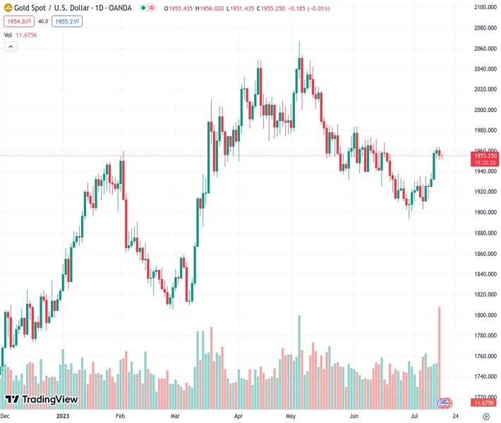 XAUUSD currently trading at 1953.94 at the time of writing. Pair opened at 1955.23 and is trading with a change of -0.07 % .