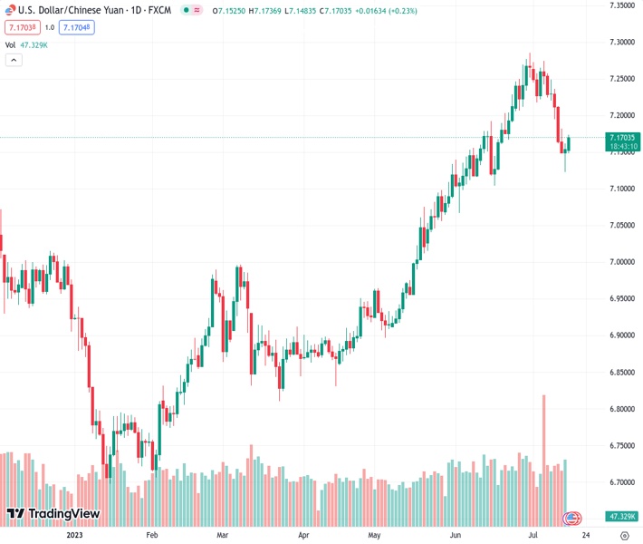 USDCNH currently trading at 7.1686 at the time of writing. Pair opened at 7.156 and is trading with a change of 0.18% % .