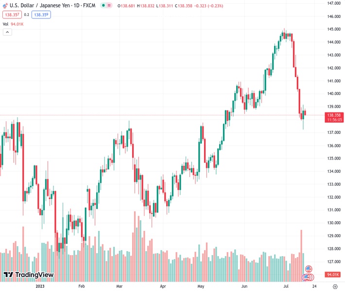 USDJPY currently trading at 138.37 at the time of writing. Pair opened at 138.81 and is trading with a change of -0.32 % .