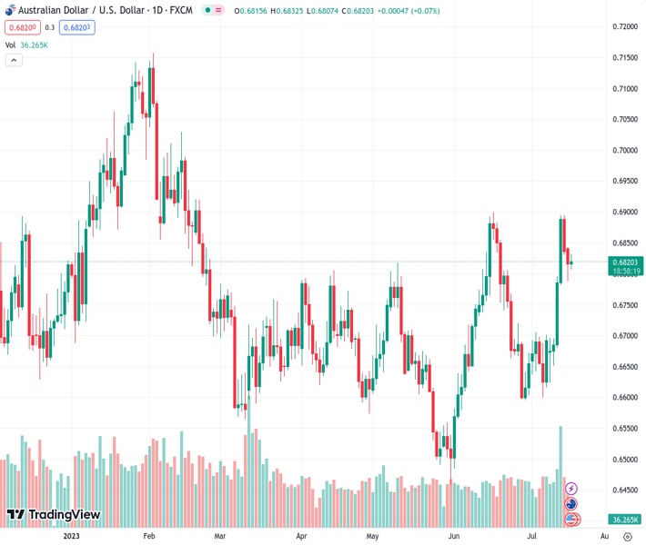 AUDUSD currently trading at 0.6833 at the time of writing. Pair opened at 0.6816 and is trading with a change of 0.25% % .