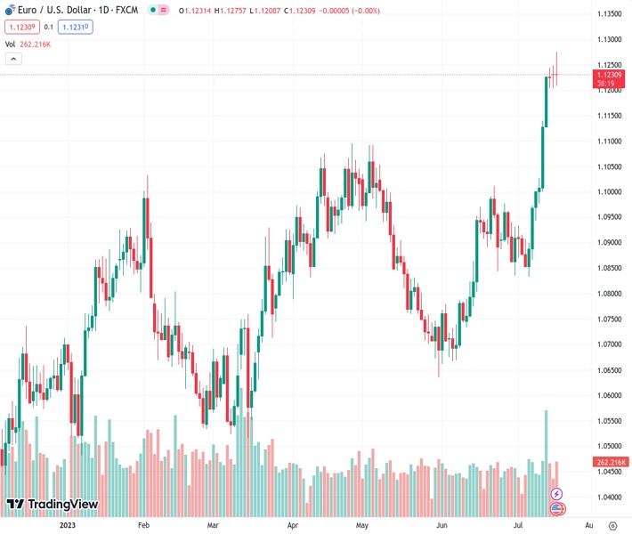 EUR/USD was down in late New York trade but overall little changed after failing to the breakout of last week’s highs again although hitting 1.12750, the highest since Feb. 2022. Meanwhile, the US Dollar rose from a 15-month low against a basket of currencies on Tuesday after core Retail Sales saw strong gains in June. Core sales showed resilience and increased 0.6% in June. Data for May was also revised slightly up to show core retail sales increasing 0.3% instead of the previously reported 0.2%.