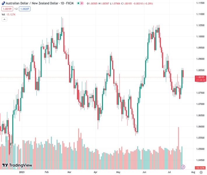 AUDNZD currently trading at 1.0816 at the time of writing. Pair opened at 1.0777 and is trading with a change of 0.36% % .