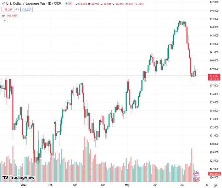 USDJPY currently trading at 138.39 at the time of writing. Pair opened at 138.72 and is trading with a change of -0.24 % .
