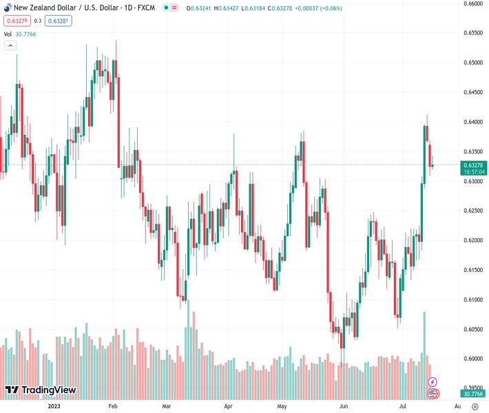 NZDUSD currently trading at 0.6342 at the time of writing. Pair opened at 0.6324 and is trading with a change of 0.28 % .