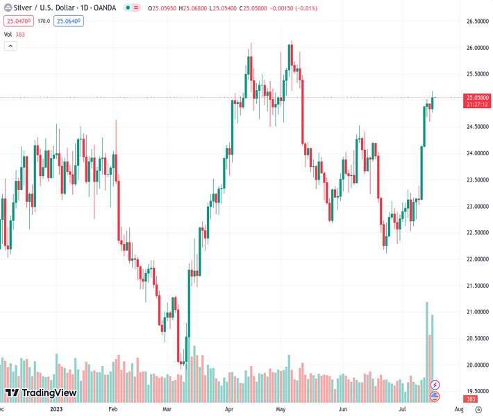 In response to the data release, the XAG/USD jumped to its daily high of $25.17 before reversing its course, with Silver’s finishing the session with a close of $25.05. The US Dollar Index (DXY), which measures the dollar against a basket of other major currencies, currently stands at 99.817, representing a decrease of 0.07%.