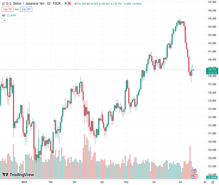 USDJPY currently trading at 138.85 at the time of writing. Pair opened at 138.72 and is trading with a change of 0.09 % .