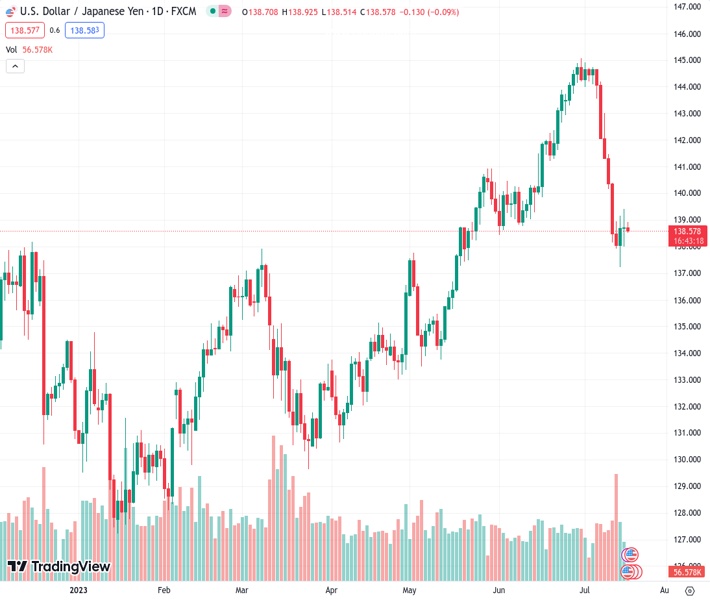 USDJPY currently trading at 138.59 at the time of writing. Pair opened at 138.72 and is trading with a change of -0.09% % .