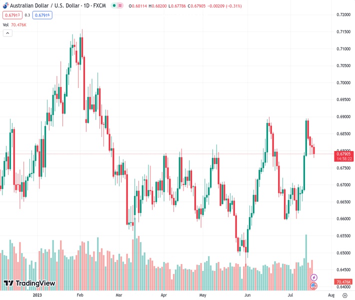 AUDUSD currently trading at 0.6794 at the time of writing. Pair opened at 0.6811 and is trading with a change of -0.25 % .