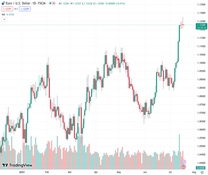 EURUSD currently trading at 1.1227 at the time of writing. Pair opened at 1.1235 and is trading with a change of -0.07% % .