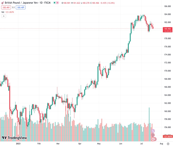 GBPJPY currently trading at 181.56 at the time of writing. Pair opened at 180.98 and is trading with a change of 0.32% % .