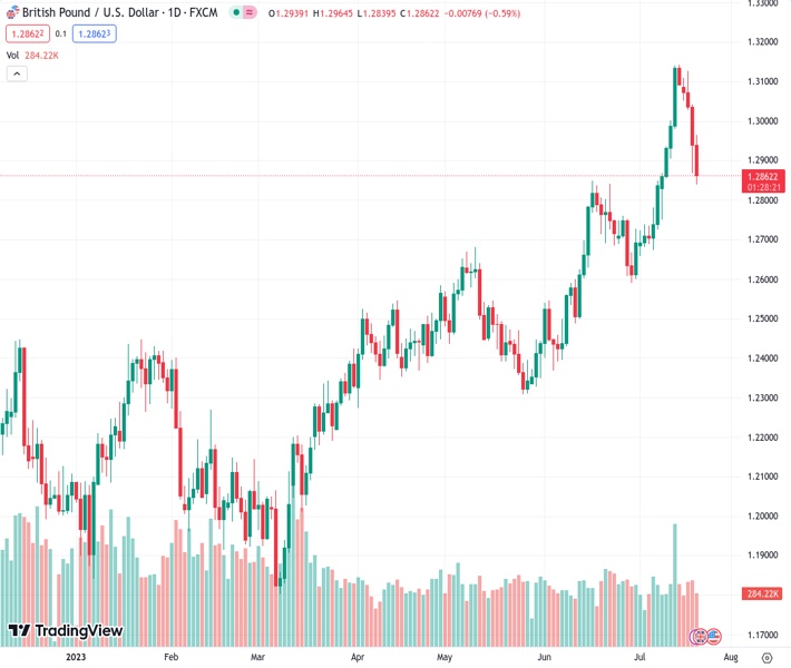 • Sterling continued its slide against the US Dollar on Thursday as the UK’s declining inflation pulled back market expectations of further aggressive rate hikes from the Bank of England (BoE). The Greenback was also in a rally of its own accord, weighing heavily on the inflated British currency.