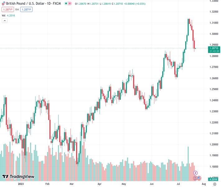GBPUSD currently trading at 1.2872 at the time of writing. Pair opened at 1.294 and is trading with a change of -0.53% % .