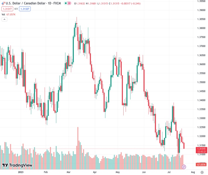 USDCAD currently trading at 1.3143 at the time of writing. Pair opened at 1.3164 and is trading with a change of -0.16 % .