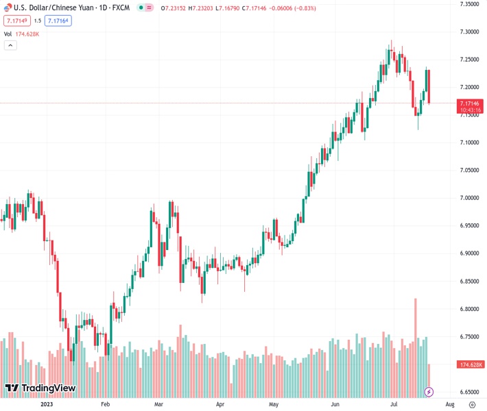 UOB suggests that it is unlikely for the USDCNH pair to experience further decline at the current level of 7.17158.