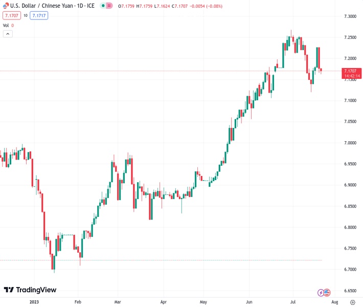 MUFG predicts that the exchange rate between the US dollar and the Chinese yuan, currently at 7.17197, will decline to 7.00 by the end of the third quarter in 2023, and further drop to 6.80 by the end of the fourth quarter.
