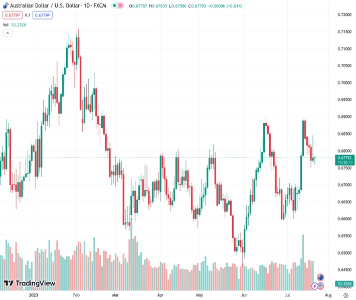 The pair currently trades last at 0.67788.