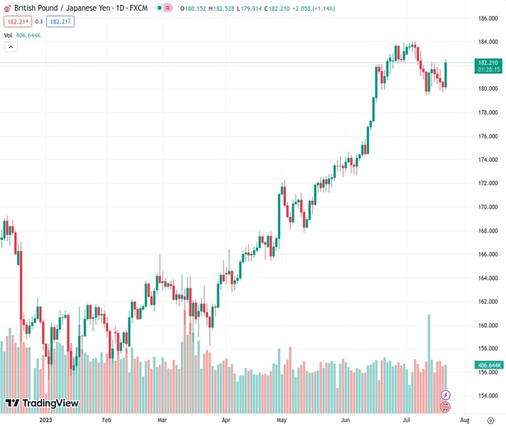 GBPJPY currently trading at 182.36 at the time of writing. Pair opened at 180.24 and is trading with a change of 1.18 % .