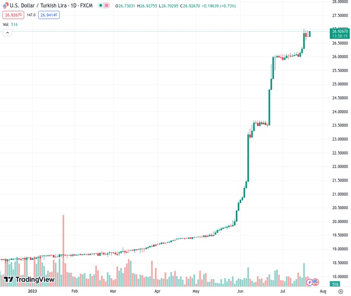 The pair USDTRY has gained momentum and is now at its highest point of the day, after experiencing a decline for the past two days.