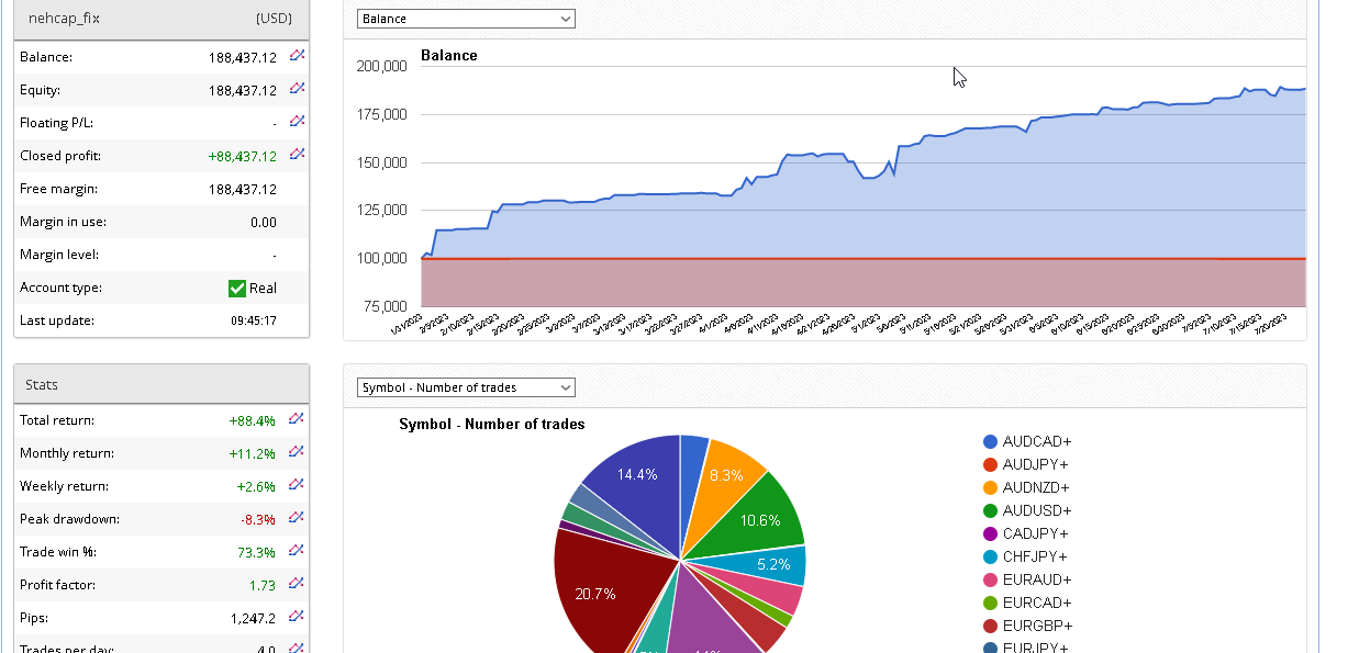 So please see the performance of our HFT system. Our 7th month tradingĀ shows the 100k account has now risen to 188.4k without much risk. As its a scalper, the system gets in and out.