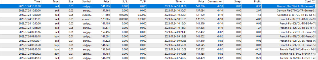 The lots are different sizes and set as per clients wishes. This one is a small $100 account. FIX 4.4 requires you to define your own lot sizes ranging from 1000 units (0.01 lots) to any upper level. Take a bow to the speed of execution where trades are opened and closed within 1 ms. That is a cross connected system on LD4. This is not possible on a MT4 orĀ MT5 or Ctrader or any broker platform which will take seconds to process a order.