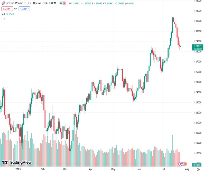The GBPUSD pair at a rate of 1.28531 is uncertain about its direction following its significant decline in value during the past week. The perspective provided by @nehcap suggests that any further decline is expected to be minimal.