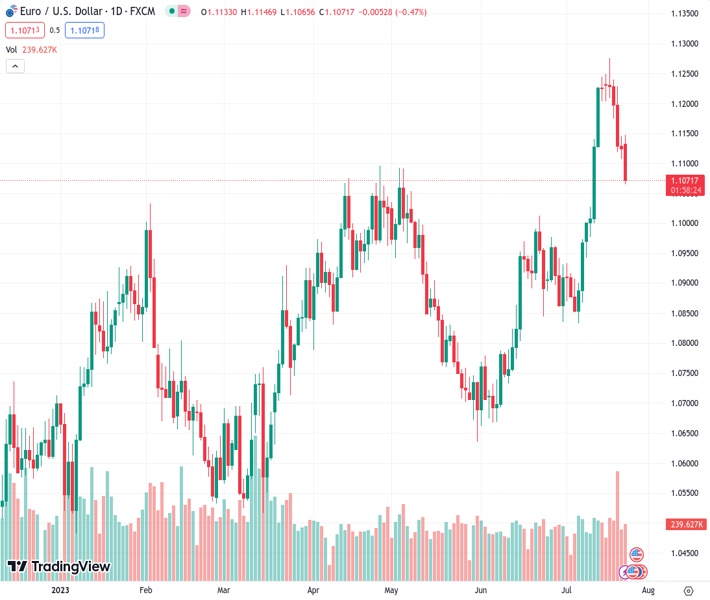 The market for EURUSD at 1.10707 is currently being influenced by bearish sentiment, with traders closely watching the highs recorded last month.